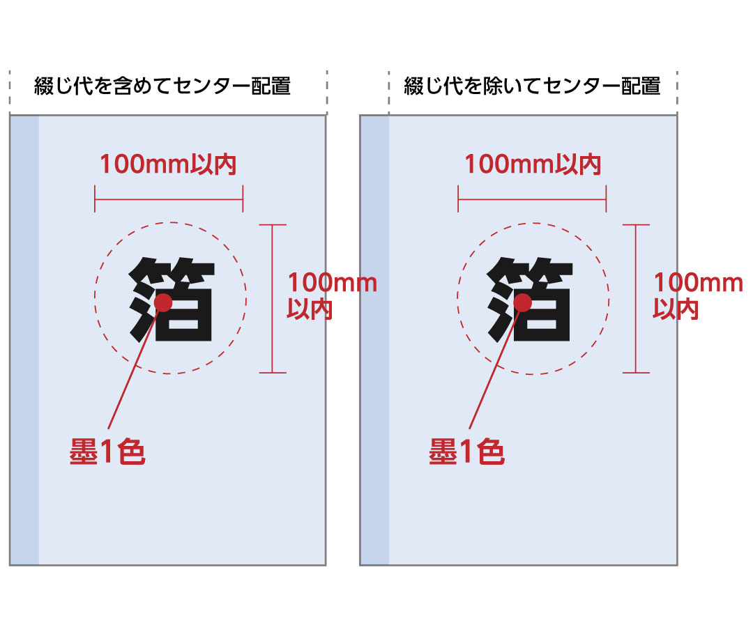 - ・箔を2色以上ご希望の場合、オプションにてご選択ください。(データ入稿の際に色見本を付けて下さい。)