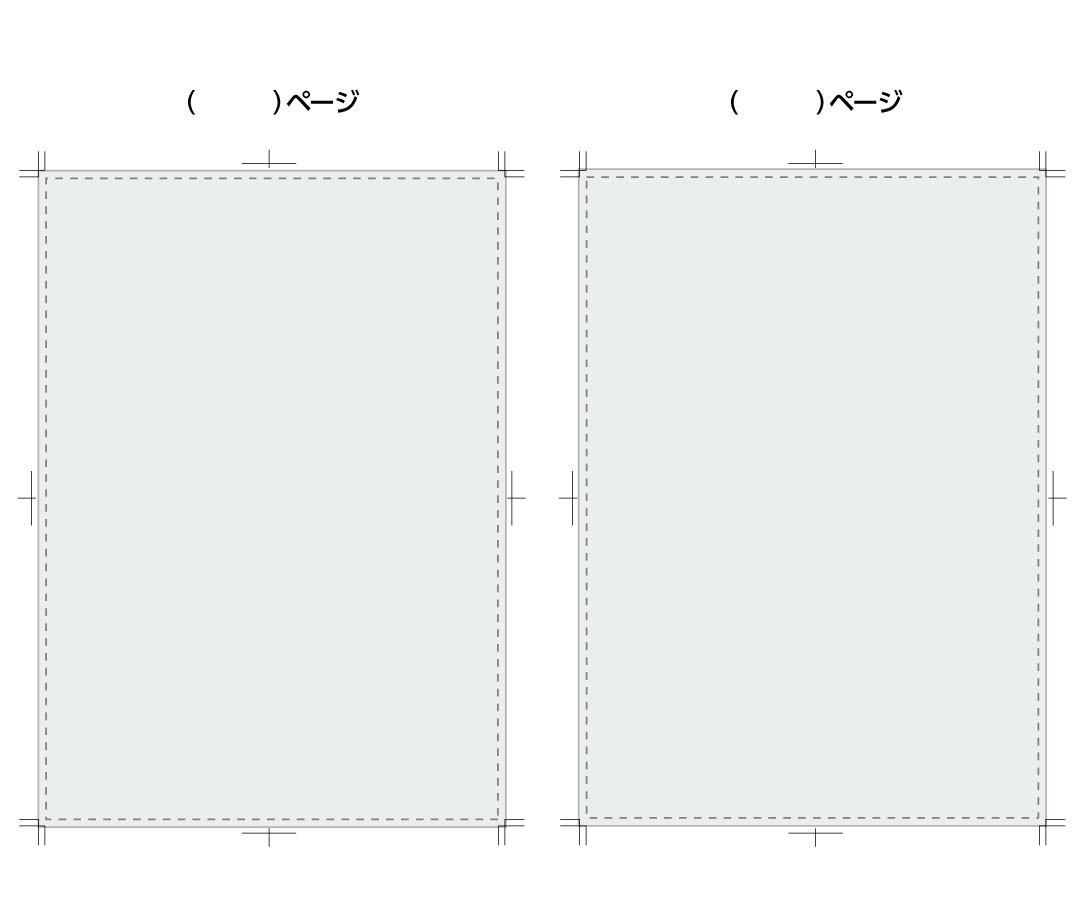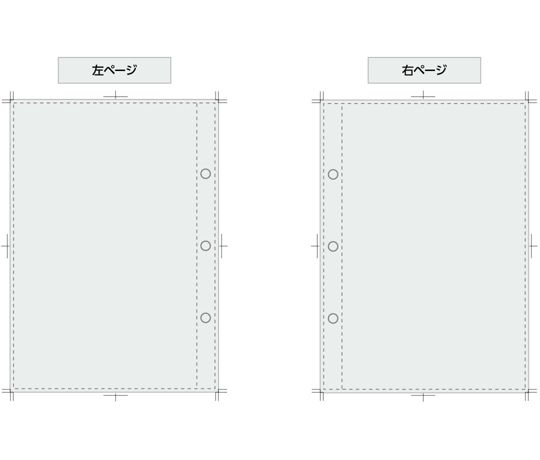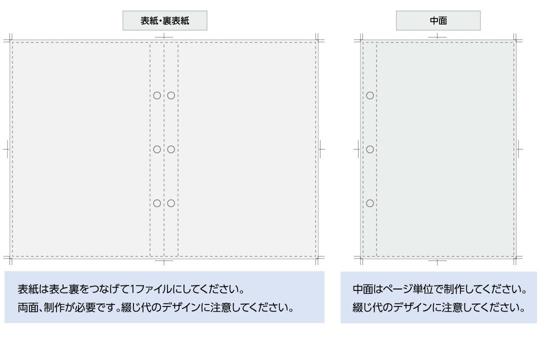 綴じ代がなく、中面を二つ折りにするため、左右見開きでデータ制作してください。