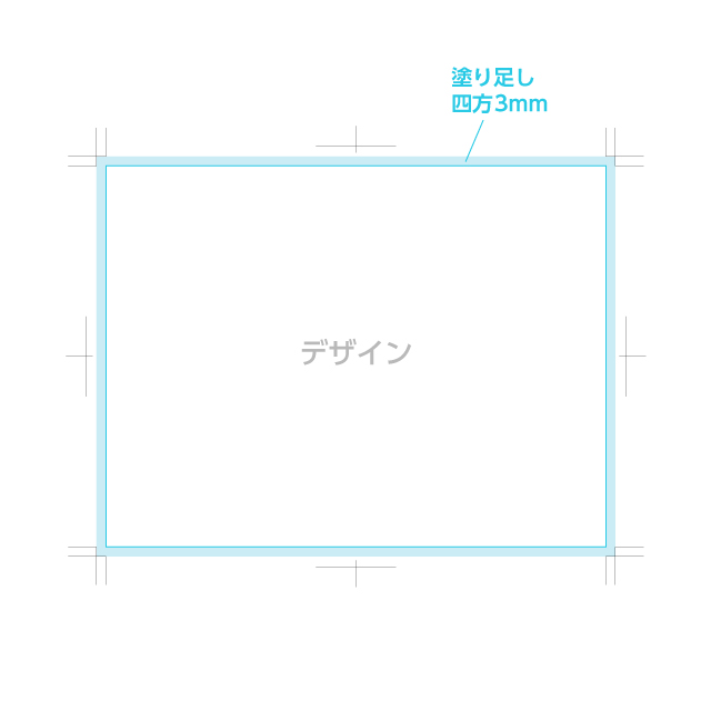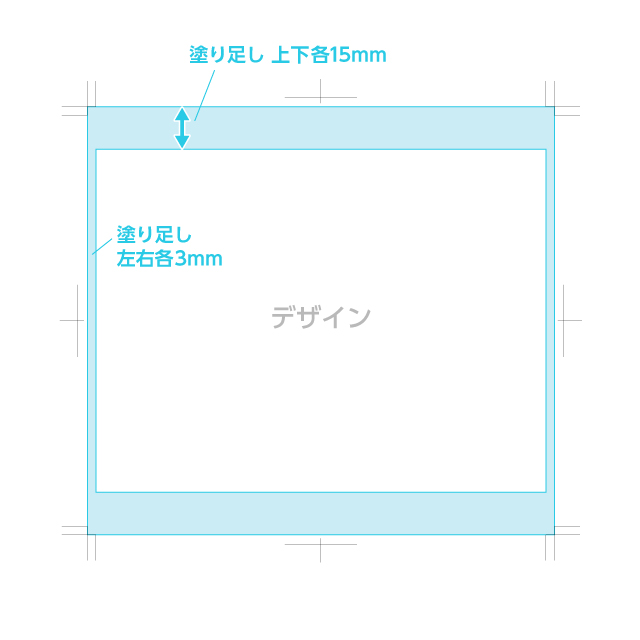 - ・左右3mm+上15mm、下15mmの塗り足しをつけてください