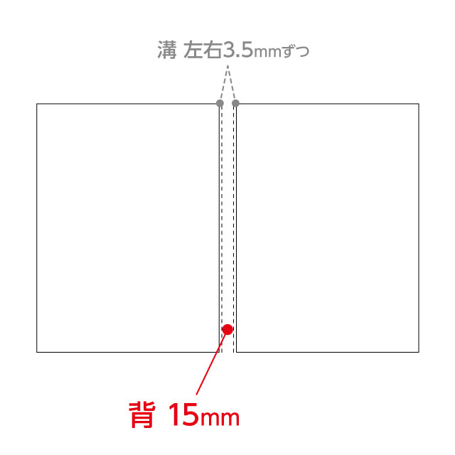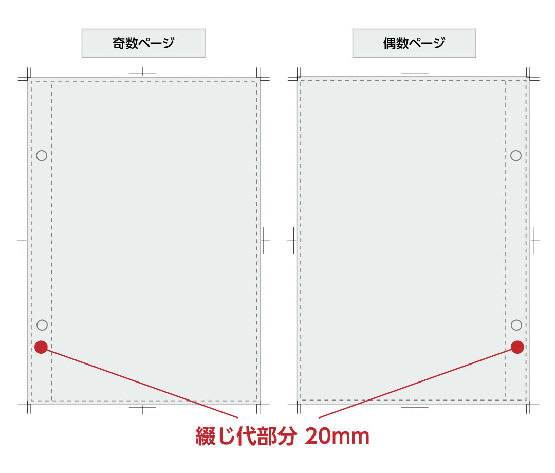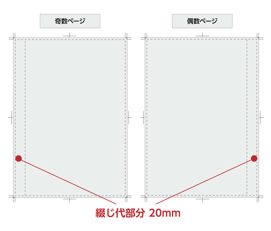 綴じ代は端から20㎜の位置、折りスジが入ります。