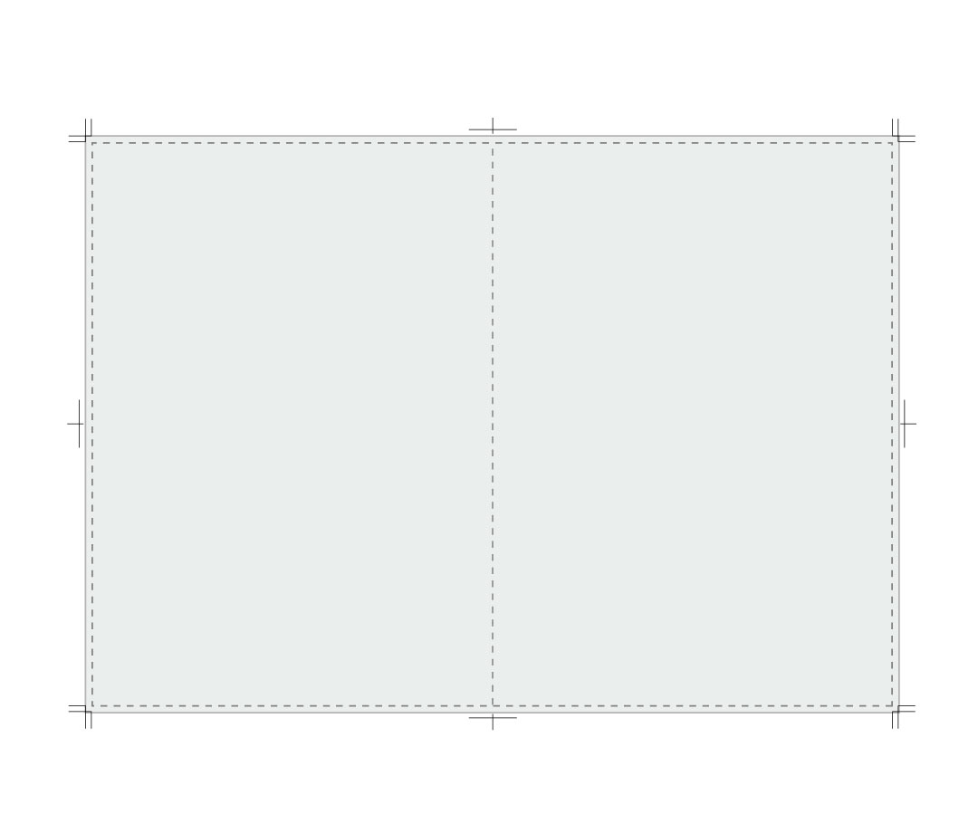 綴じ代がなく、中面を二つ折りにするため、左右見開きでデータ制作してください。