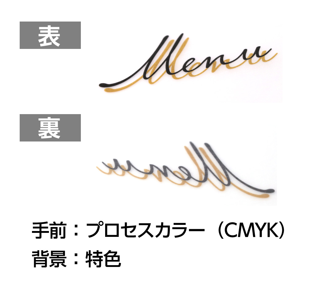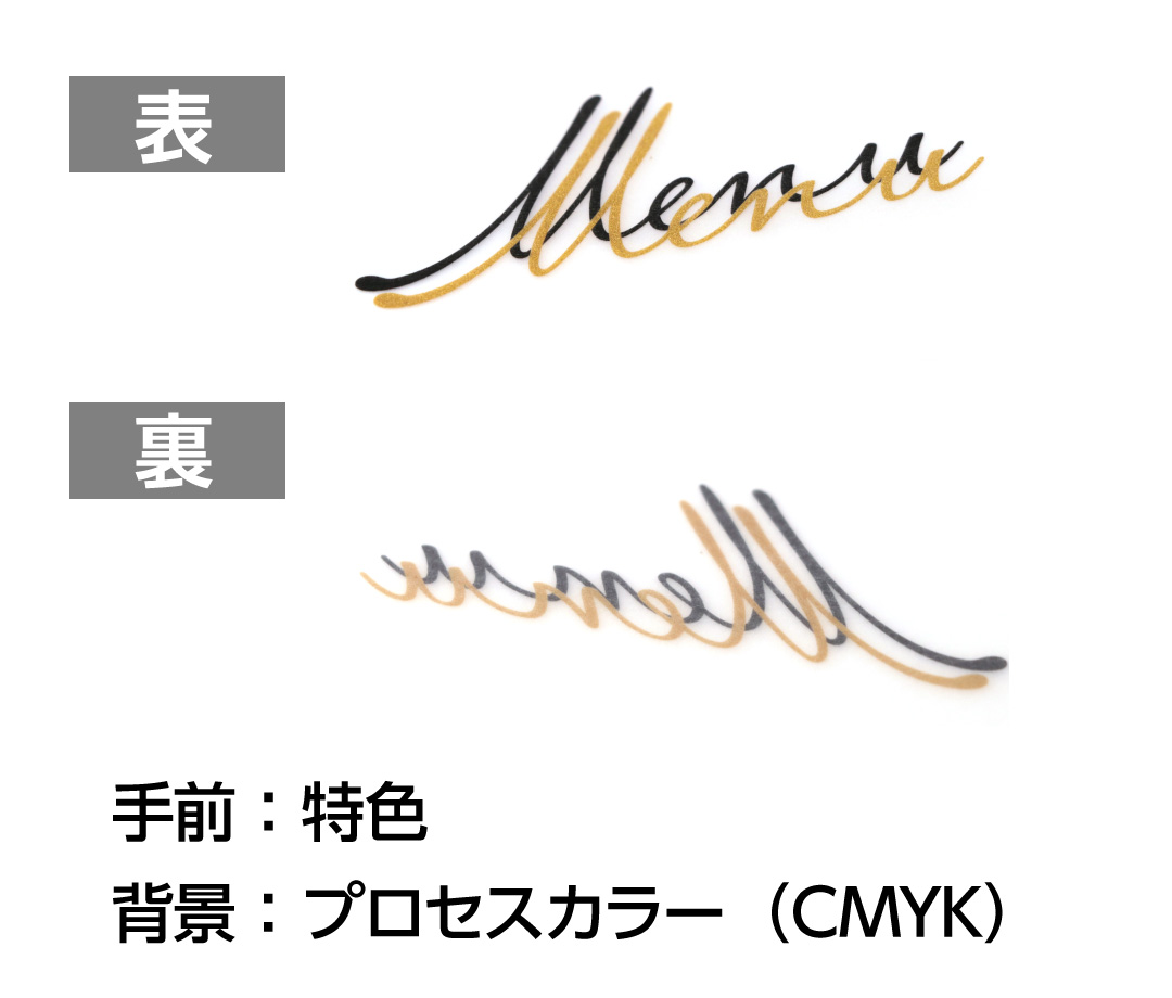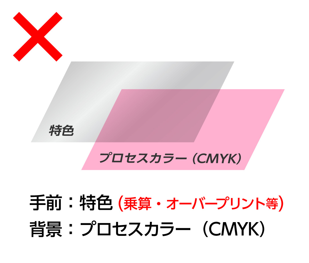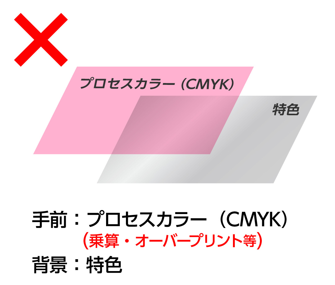 - ・特色とCMYK(プロセスカラー)の掛け合わせ印刷はできかねます。デザイン上、重なった部分は抜きになります。