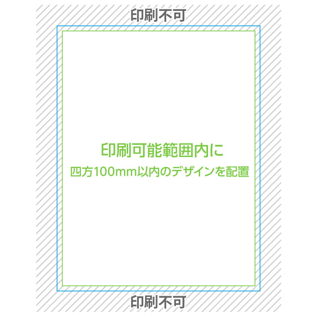 - ・印刷可能範囲内に、四方100mm 以内のデザインを配置してください。