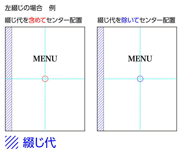特に、センターに配置した場合、綴じ代を含めるか含めないかで印象が変わりますのでご注意ください。