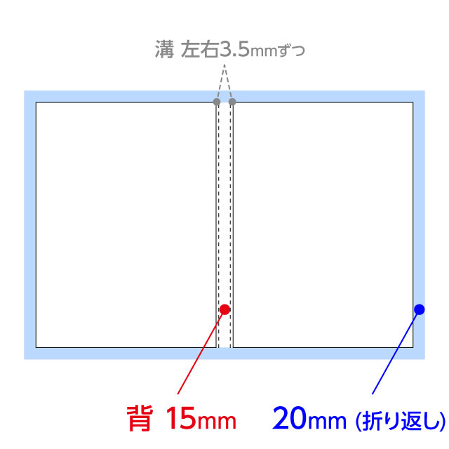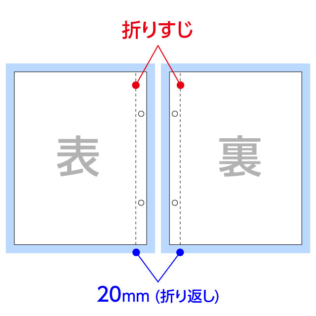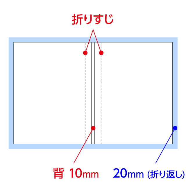 - ・折りスジが、端から20mmの位置に入ります。