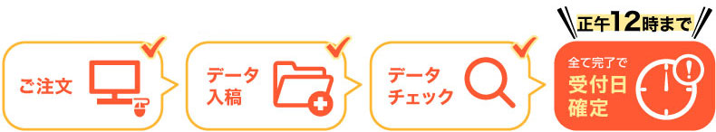 - ・12時までの支払い確認・データチェック完了で当日受付となります。
