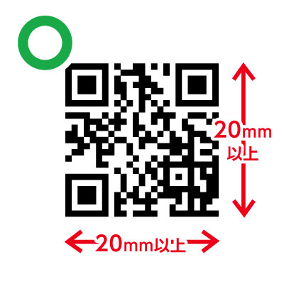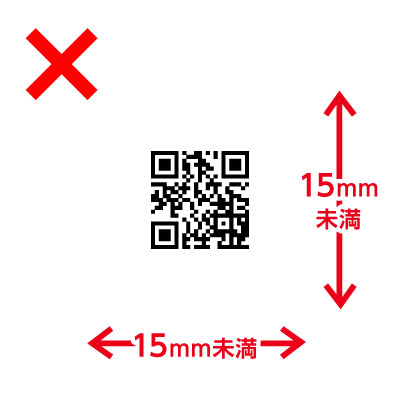 QRコードは、20×20mm以上を推奨しております。 15mm×15mmを下回ると読み取りが困難になります。