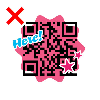 QRコードにイラストを重ねたり、デザインをのせるなどして変形してしまうと、 ちょっとした汚れや欠けでも、読み取りが出来なくなる可能性があるため推奨しておりません。 認識性能を低下させないよう、装飾やデザインは控えめにして読み取りエラーを防ぎましょう。