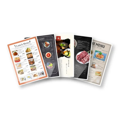期間限定メニューや推し商品は、パウチメニューなど安価な紙メニューで視認性&コスパ◎
