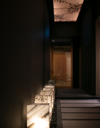 伝統木工技術「組子細工」が印象的な個室に、端正な装丁のブックが調和。細部までこだわり抜いた設えが、伝統の味を楽しむ気分を静かに高めます。