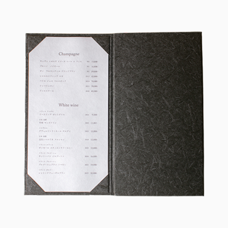 スタッフから手渡された際、しっくりと収まるサイズ感。メニューも、大切な時間を演出する要素として、心地よい会話を後押しします。