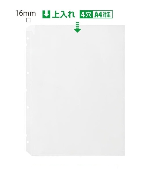 スリムバインダー仕様メニューブック対応の抗菌A4中面ビニールポケット。上から差し込むタイプで、1枚で2ページ分のメニューが入ります。