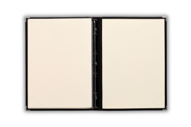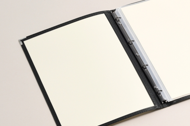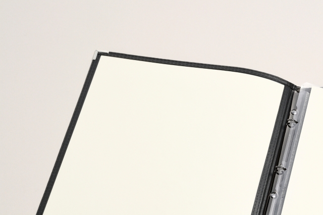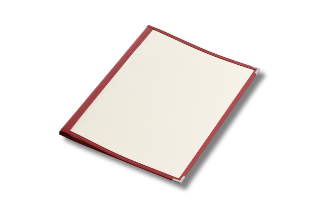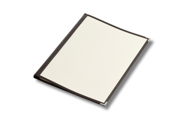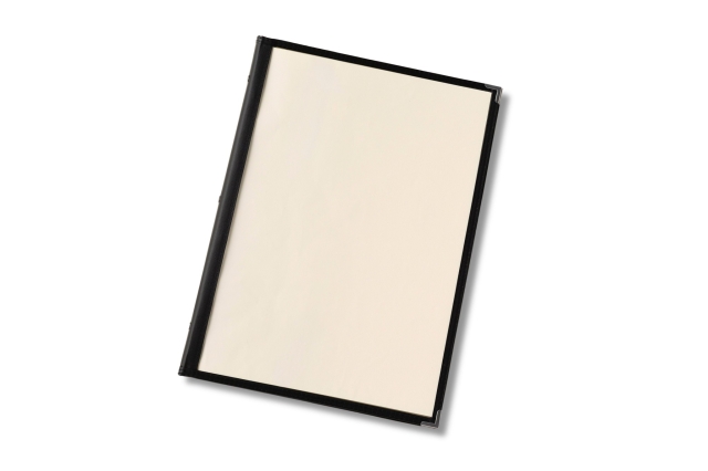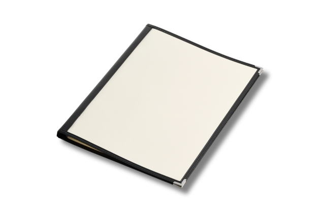 幅12mmスリムバインダー仕様で手軽にワンタッチでページの増減が可能。様々な業態で使いやすいクリアテーピングメニュー(B4サイズ)。