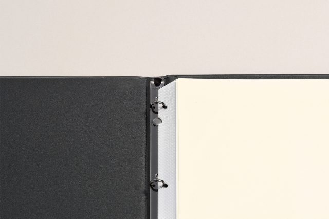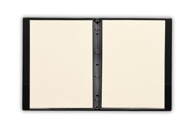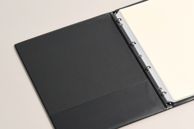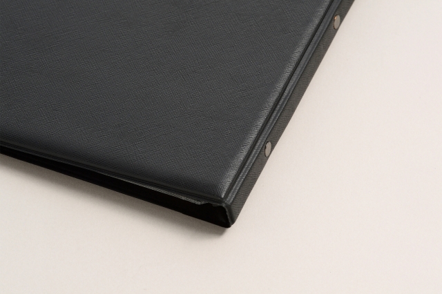 幅12mmスリムバインダー仕様で手軽にワンタッチでページの増減が可能。サラっとした手触りが気持ちの良いお手入れが簡単なメニュー&インフォメーションブック。メニューブックの両内側に差し込みできるポケット付き。