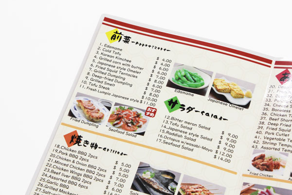 大判ラミネートメニュー